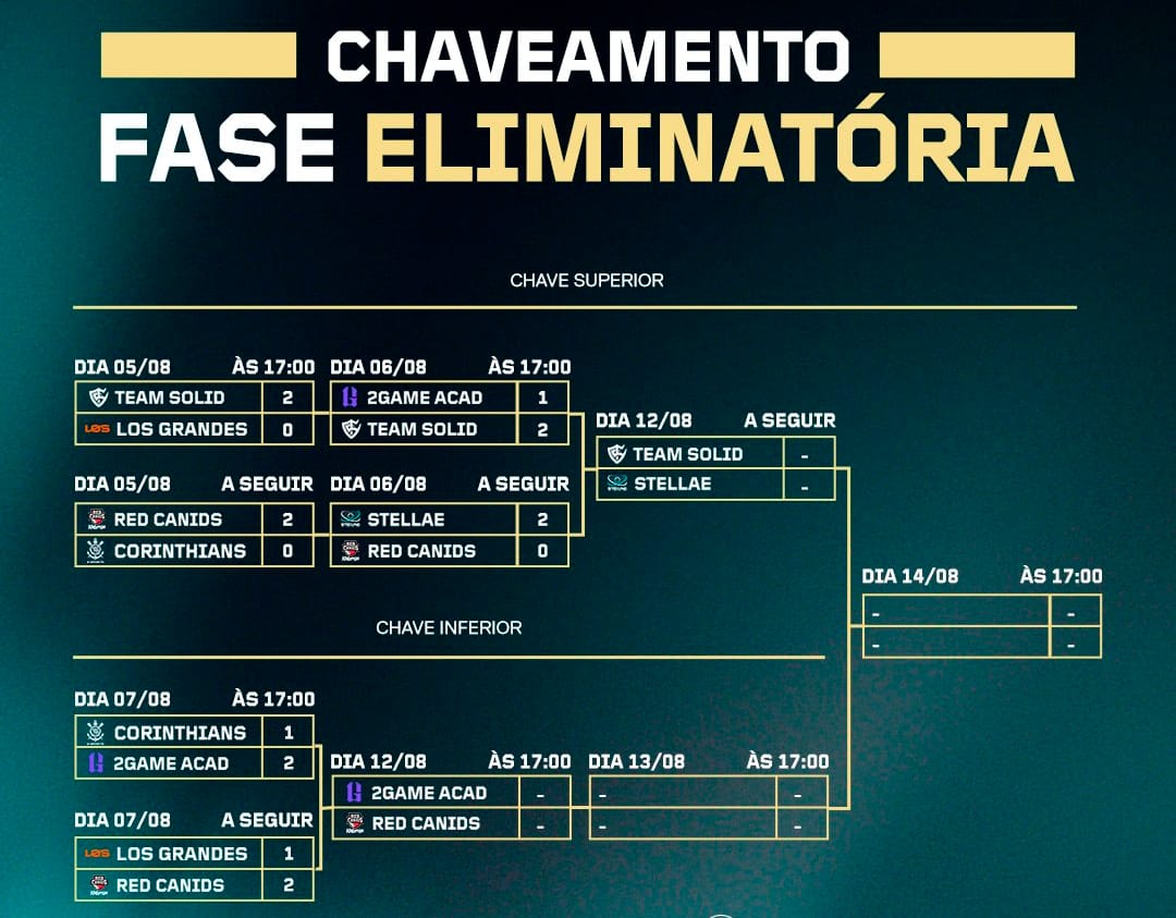 Na chave superior, Team Solid e Stellae Gaming avançaram à final após vitórias convincentes. A Solid superou a 2GAME Academy por 2 a 1, virando a série embalados pelas atuações de dgzin e havoc. Já a Stellae passou pela RED Canids por 2 a 0 com destaque para guuih e sw, garantindo a chance de disputar a vaga direta na grande final. Stellae e Team Solid se enfrentam no próximo dia 12.